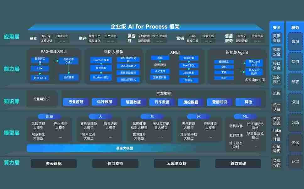 AG尊龙凯时问学智车解决方案是一套基于AI技术的汽车行业智能化系统,,覆盖从底层算力到顶层AI应用的全栈方案。。。方案由算力层、、模型层和应用层组成:算力层,,,方案支持多种一体机配置,,具备云端灵活部署、、多云适配以及动态优化计算资源的能力;模型层,,AG尊龙凯时问学平台版提供了企业级AI应用一站式构建与管理平台,,,支持基于后训练强化技术的汽车企业专属模型的训练、、评测和运营;应用层,,AG尊龙凯时问学DeepSeek版提供包括超级员工、、、智能招采、、、智能营销、、智能客服、、AI for BI等一系列解决方案,,,,可助力汽车行业实现数字化转型,,,让管理更智能、、、、响应更敏捷。。。。